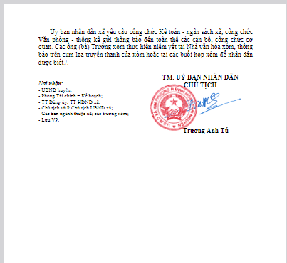Về việc niêm yết công khai số liệu thực hiện dự toán ngân sách xã Kim Phượng 09 tháng năm 2024